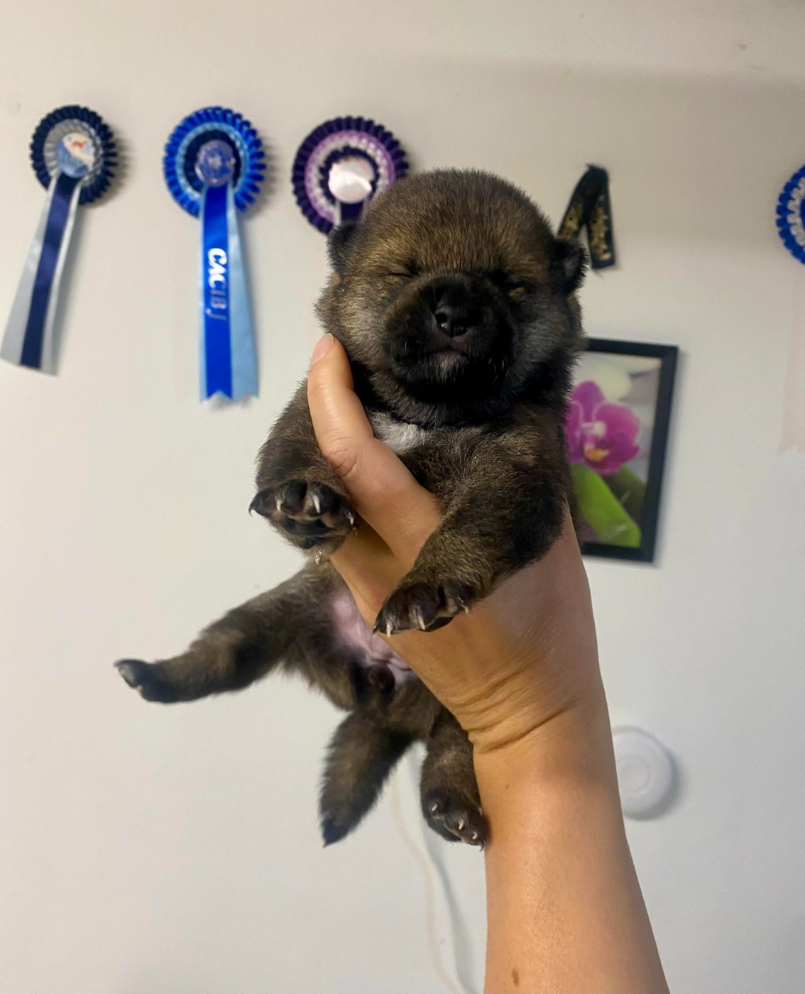 Les parents, Multi Ch. Allaikha's Thor (Champion International, Slovénie, Croatie, Bosnie, Monaco, Suisse, cot. 4) et Ch. Umi Yama No Hikari (Championne Suisse, cot. 3), proviennent d’une lignée de champions internationaux. Ce mariage a été soigneusement sélectionné et assure un taux de consanguinité de 0%, offrant des chiots avec un excellent potentiel génétique.